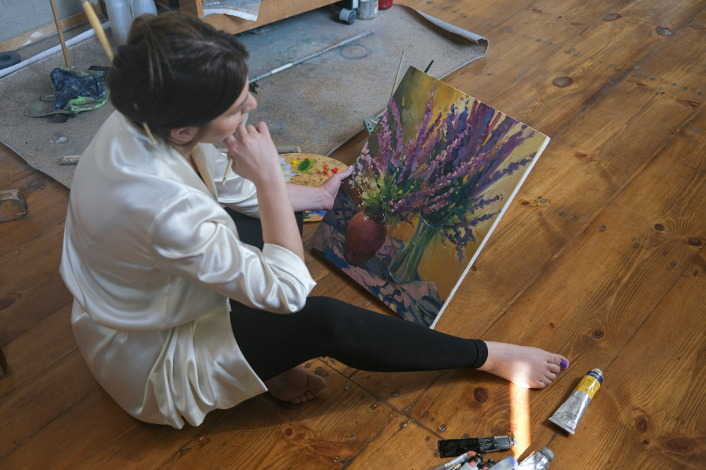 Wähle Modelle mit mehreren Ebenen, um Materialien nach Art zu sortieren – zum Beispiel Farben oben, Pinsel in der Mitte und Reinigungsutensilien unten.